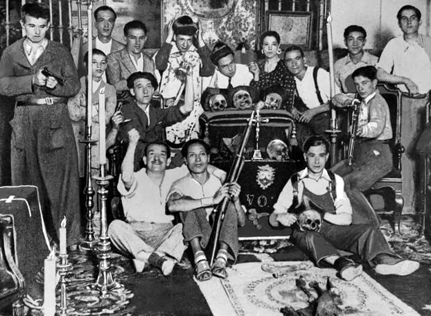 Milicianos comunistas posan junto a algunas calaveras, sacados posiblemente de las tumbas donde se enterraban a las monjas.