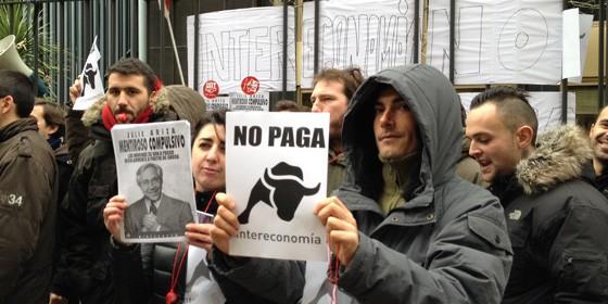 Concentración de trabajadores y antiguos empleados de Intereconomía contra los impagos de Julio Ariza