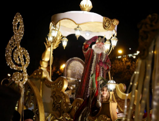 En homenaje a la magia de la música, bandas, orquestas, coros, grupos musicales y varios espectáculos han preludiado el paso de la comitiva real, en la que Melchor, Gaspar y Baltasar también han viajado en tres carrozas muy musicales diseñadas para la ocasión.