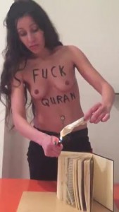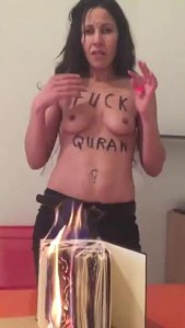 Casi simultaneamente al muy sospechoso “suicidio” de un alto cargo de la policía judicial francesa involucrado en la investigación del atentado de París, comenzó a circular en internet un video de tres minutos y medio, en el que una supuesta activista del grupo subversivo Femen prende fuego a un ejemplar del Corán, el libro sagrado de los musulmanes, a cara y tetas descubiertas, con la leyenda “FUCK QURAN”, escrita en su pecho y vientre.