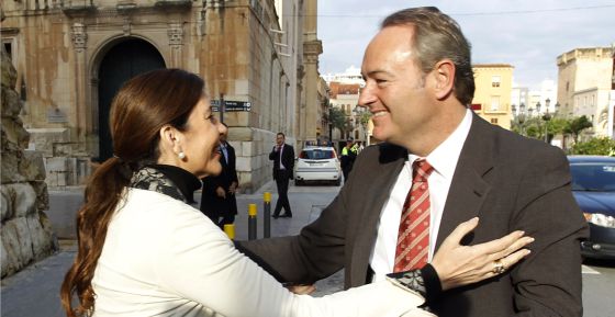 La alcaldesa de Elche, Mercedes Alonso, saluda al presidente de la Comunidad de Valencia, Alberto Fabra.