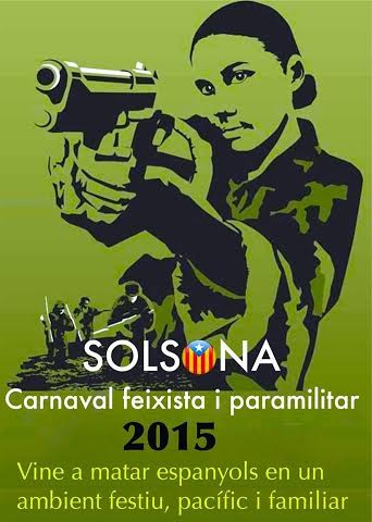 CG.- Otra vez Solsona. Tras las andanzas difamatorias del incalificable Lluís Gonzaga Valls Bernaus, una nueva arremetida contra cualquier símbolo de España y contra cualquiera que se oponga a la secesión de Cataluña. Un ejemplo de ello ha sido la reciente retransmisión del carnaval de Solsona (Lérida) de este año realizada por Xip TV, la cadena de televisiones locales de Cataluña, y que ha sido una verdadera muestra de pedagogía del odio.