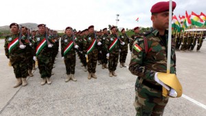 Los nuevos soldados desfilaron y saltaron a través de neumáticos en llamas ante una fila de responsables kurdos y asirios en Fishkabur, en el nordeste de Irak, cerca de la frontera turca y siria, constató la AFP.