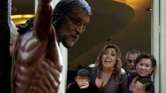 “No se si se habrían atrevido a hacer lo mismo con otras confesiones o con otra Semana Santa. Dudo que hicieran esto mismo con el Cachorro de Sevilla, por ejemplo”, reconoció el hermano mayor. La mujer que aparece en el balcón y a la que han colocado el rostro de Susana Díaz es la presentadora de televisión Terelu Campos, que suele ver las procesiones malagueñas desde este enclave. La foto original es de 2010 y aparece en el portal Diario Femenino.