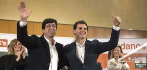 Albert Rivera, junto al candidato de Ciudadanos a la presidencia de la Junta de Andalucia, Juan Marín.