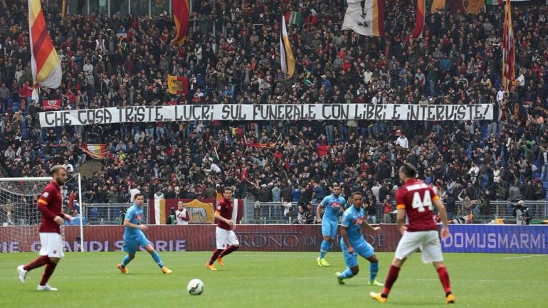 “Qué triste, lucras de su funeral con libros y entrevistas”. La pancarta apareció durante el encuentro entre Roma y Napoli del sábado y se refería a la publicación del libro “Ciro Vive”, escrito por Antonella Leardi, madre de Ciro Esposito, hincha napolitano asesinado en mayo de 2014, cuando fue a presenciar la final de Copa Italia disputada entre los “Azzuri” y Fiorentina en el estadio Olímpico de la capital.