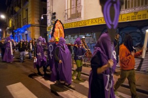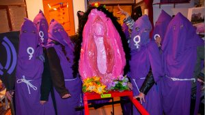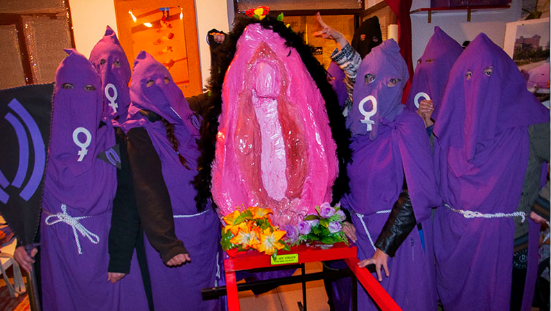 La “Cofradía’ del Santo Coño de Todos los Orgasmos” inauguraba la Semana Santa con su procesión, la única atea que ha conseguido permiso para manifestar sus creencias en Madrid. Dicen combatir “con expresión artística los ataques del gobierno hacia el sexo femenino y los derechos de las mujeres, ataques que, según estos grupos, “se manifiestan abiertamente en sus propuestas para reprimir la sexualidad de las mujeres e incentivar el modelo de sociedad que impone el misticismo católico, incrustado a sangre y terror”.