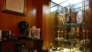 Eso sí, que nadie piense que la cruz estaba notablemente visible. Por el contrario, estaba en una vitrina en la entrada que da al despacho propiamente dicho de la regidora, junto a otras piezas de arte. De hecho, en imágenes de la Alcaldía de anteriores mandatos se puede apreciar junto a la cruz otro elemento cristiano: una mitra de San Eloy, también en el inventario de bienes histórico-artísticos del Consistorio. Cerca de ellos, además, hay un candelabro judío de siete brazos, la «menorah».