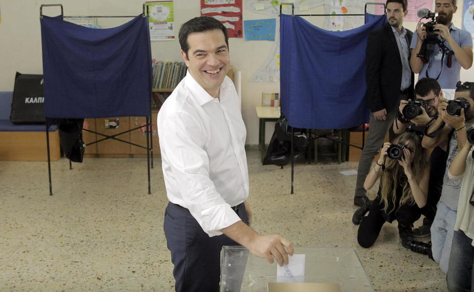El presidente griego, Alexis Tsipras, deposita su voto este domingo en un colegio electoral de Atenas.