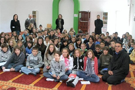 Aquí hay una foto de un viaje a una mezquita y las alumnas se ven obligados a inclinarse ante Alá: