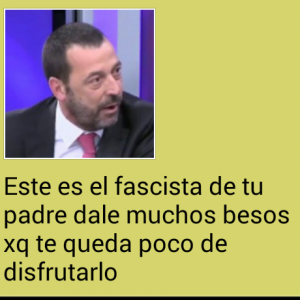 Josele Sánchez no está solo. ¿como se puede ser tan hijos de puta como para hacer un mensaje para la hija de Josele diciendole claramente que van a cargarse a su padre? Un periodista valiente y patriota que no se averguenza de serlo merece el apoyo de todo hombre de bien