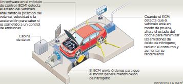 El sistema para falsear el volumen de gases nocivos emitidos a la atmósfera de los motores diésel de VW es sencillo y, a la vez, una obra sofisticada de ingeniería. La centralita electrónica de los motores detectaba cuando una sonda intentaba medir su contaminación. En ese momento, el motor reducía drásticamente sus emisiones a costa de disminuir potencia y prestaciones. Pasado el control, recuperaba sus prestaciones y aumentaba su nivel ilegal de emisiones.