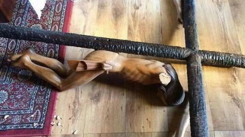 Destrozan un Cristo y una Virgen en una parroquia de Rincón de la Victoria (Málaga) y escriben Alá en la pared