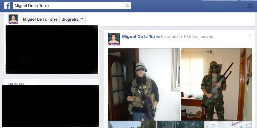 Este es el perfil de Facebook de Miguel de la Torre y una de las fotografías exhibida en su perfil en las redes sociales (data de 2013). Una imagen de una persona empuñando lo que parece ser la copia de un arma y apuntando a la cabeza de un, aparentemente, suplicante islamista.