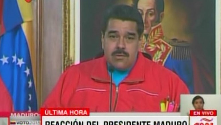 Minutos antes, Tibisay Lucena Ramírez, presidente del Consejo Nacional Electoral (CNE), había informado los primeros resultados oficiales que le daban una contundente victoria a la oposición, nucleada en la Mesa de Unidad Democrática (MUD).