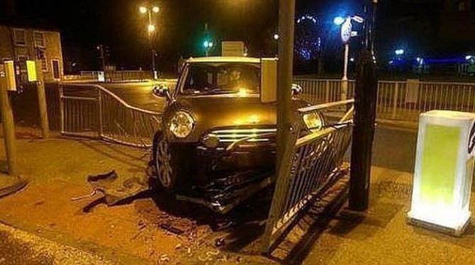 Según cuentan en The Telegraph, el conductor, que estaba ebrio y que conducía un Mini Cooper, atravesó las vallas metálicas que separaban la calzada de la zona habilitada para peatones y se empotró contra una farola.