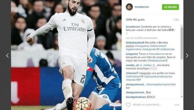 Al terminar el partido, el mediapunta madridista subió una foto a Instagram en la que añadió un misterioso comentario: “Contento por la victoria y feliz por volver a disfrutar del fútbol”. De esta forma, daba a entender que en los últimos meses había sufrido con su profesión. Esto muchos los relacionaron con Benítez, posible culpable de ello.
