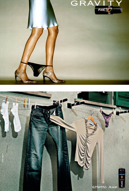 Si hay una multinacional que use sin tapujos el sexismo para venderse esa es Axe, la marca de desodorantes del grupo Unilever. Más de 30 años de experiencia en la cosificación de la mujer. Y lo es porque el producto que venden es, simplemente, un medio para alcanzar esa posesión final y así tienen que publicitarlo. Son coherentes en sus principios. La marca Axe se ha construido como un imán para atraer a las mujeres por el simple hecho de echárselo en los sobacos. Toda una metáfora a la igualdad de oportunidades. Aquí la publicidad y el producto tal cual sobreviven del sexismo. Y no dejan de vender.