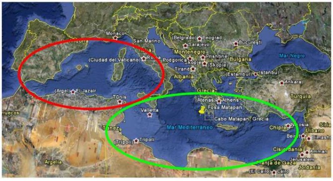 El MARCOM dirige el despliegue de medios navales (buques de superficie y submarinos) y aéreos (aviones de patrulla marítima/alerta temprana) en el Mediterráneo.