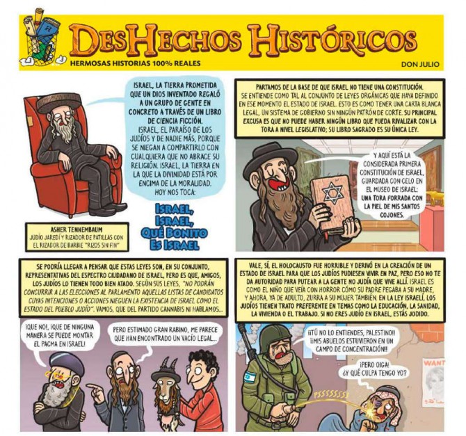 En el último número de El Jueves, publicado el 10 de marzo, esta sección trata sobre el estado de Israel y el autor se centra en las costumbres y leyes judías.