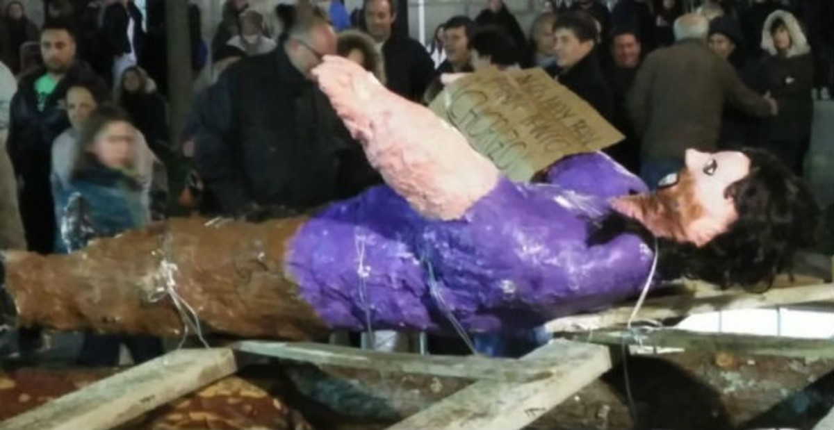 El ‘pelele’ de Pablo Iglesias, apedreado como ‘Judas’