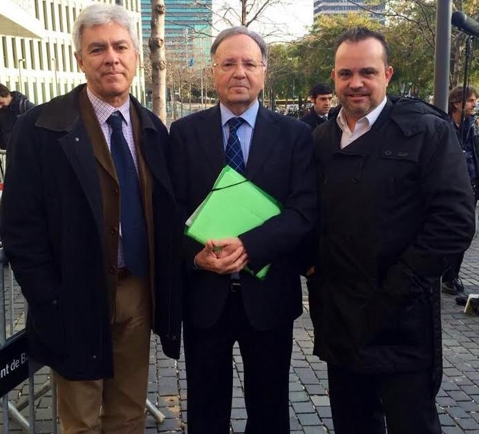 August Armengol, a la izquierda y Robert Hernando, a la derecha. En el centro, Miguel Bernad, detenido ayer por extorsión.