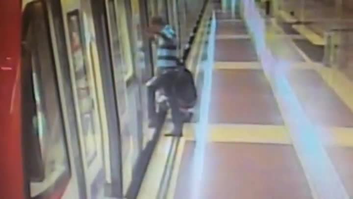 La grabación muestra a una mujer orinando en el andén y a un hombre reteniendo el metro para evitar que se les escape.
