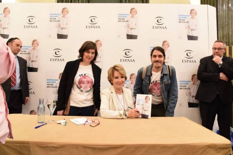 WTB.- Se llaman FEA y son feministas con y por Esperanza Aguirre. Su logo es la cara de la lideresa pasada por un filtro rosa y con el FEA bien grande. Se han hecho famosas por acudir el pasado 25 de Abril a la presentación del libro “Yo no me callo” de la exlíder del PP de Madrid. Las feministas portaron camisetas de su asociación y aplaudieron enfervorecidas cada intervención de la político madrileña.