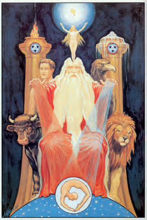 Pero no es así. Si bien estas imágenes realmente aparecen en la simbología del Antiguo y del Nuevo Testamento, su disposición cristiana es diferente. Lo tenemos recogido en la obra de Ábate Auber, “Histoire du Symbolisme”, tomo IV: