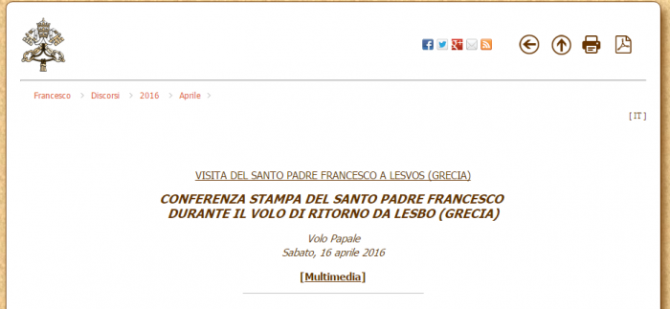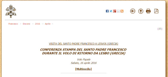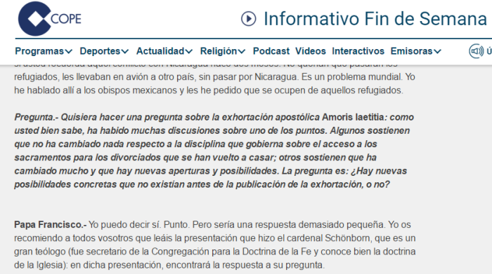 Y en efecto, en vatican.va se encontraba la respuesta: supuestamente Francisco no dijo “Yo puedo decir sí“, sino “Yo podría decir sí“, lo cual no suena tan categórico, a su vez que impreciso: