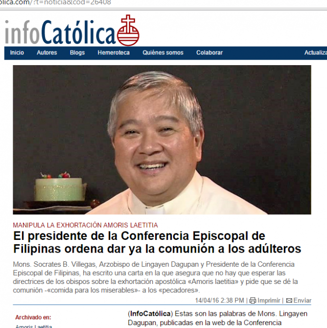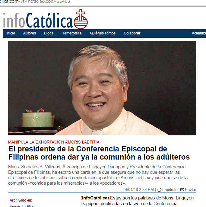 Pero volvamos a nuestras respuestas. El primero que dio la respuesta respecto al significado de Amoris Laetitia fue el Presidente de la Conferencia Episcopal Filipina: