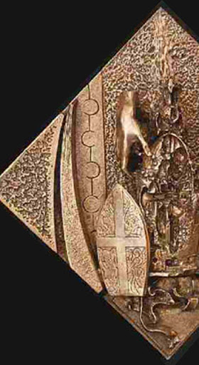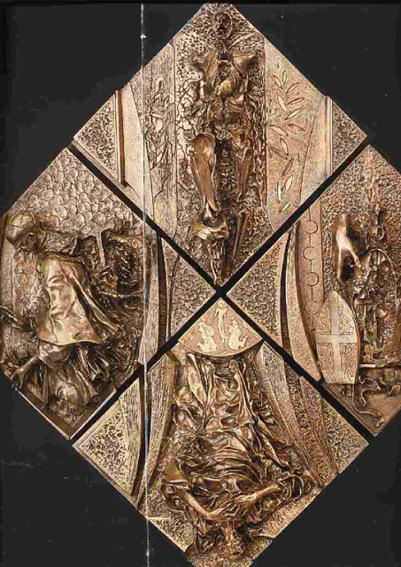 Volvamos al análisis de las placas laterales en el monumento a Pablo VI en la catedral de Brescia. La placa izquierda representa el Concilio Vaticano II: