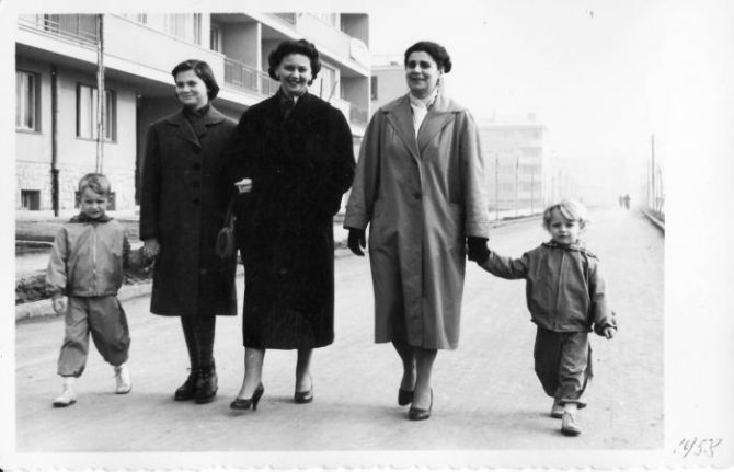 Imágenes de 1958 de una ciudad perdida de Yugoslavia. Hay más estilo y educación que anoche en el teatro de la capital. ¡Las mujeres todavía no llevaban pantalones! Niños-niños, y niñas-niñas.