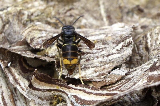 Aunque esta avispa no es agresiva con los humanos, sí muestra un comportamiento implacable con otros insectos.