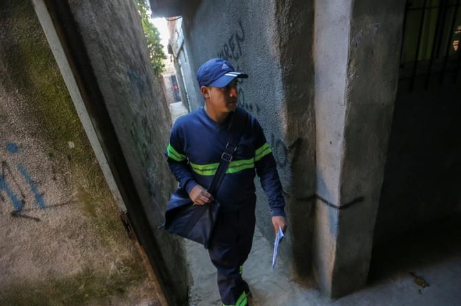 Emanuel nació y creció entre las apretadas casas, la luz intermitente y los pequeños charcos de agua estancada que se reparten por el humilde barrio, del que desde 2013 es uno de los dos carteros, un servicio que no existe en ninguna de las otras villas de la ciudad o de la periferia.