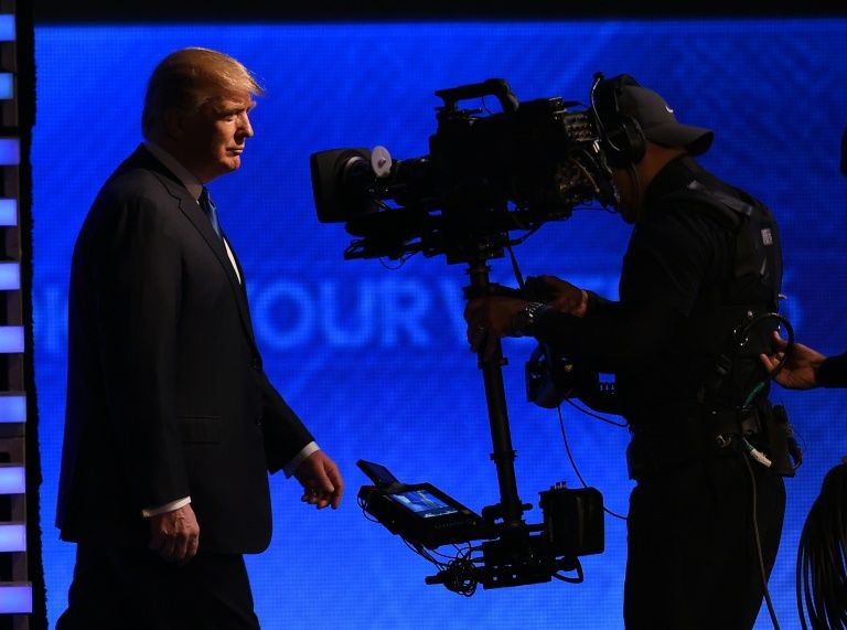 El precandidato presidencial republicano Donald Trump llega a un debate el 6 de febrero de 2016 en Manchester (New Hampshire, EEUU)