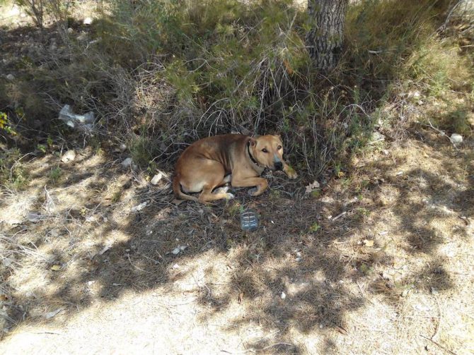Abandonan a una perra atada con una cadena a un árbol en Calpe (Alicante)