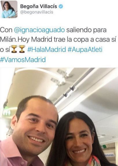 AM.- Ciudadanos ha reinventado la excusa de ‘mi perro se ha comido los deberes’ a colación del tuit que su portavoz en Madrid, Begoña Villacís, portavoz de Ciudadanos en el Ayuntamiento de Madrid, colgó y borró mientras volaba a Milán para ver la final de la Champions League. Se trata de una foto en la que aparecía ella misma junto a Ignacio Aguado, el portavoz del partido en la Asamblea de Madrid, en el avión camino de Milán.