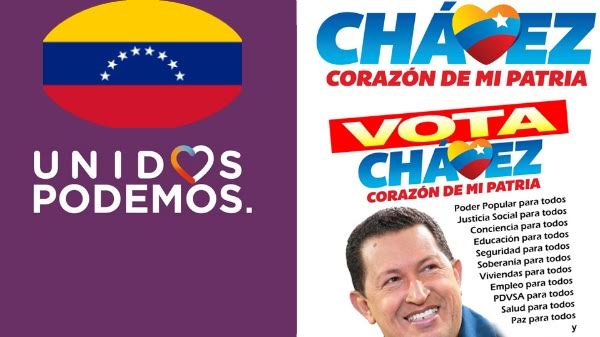 José Flores.- Pablo Iglesias ha de rendir pleitesía y cuentas a su amado benefactor y ya no sólo copia los emblemas que utilizados por Hugo Chavez, sino que reproduce hasta los logos. Si se fijan detenidamente, el corazón de Unidos-Podemos, en su parte izquierda, lleva los colores de la bandera de Venezuela, igual que el corazoncito que empleaba el dictador bolivariano en sus campañas, con la diferencia de que Iglesias ha invertido el orden para despistar a sus acérrimos y engañados seguidores.