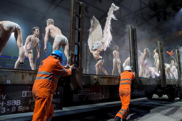 Luego, en lugar del Confiteor, donde se pide perdón a Dios, se afirman en su pecado. Entran otros en un vagón, vestidos con ropa interior blanco, que empiezan a manosearse de forma lasciva.