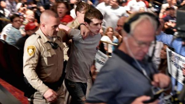 Reprobable acto y a este hombre joven hay que aplicarle un correctivo. Por otro lado, el Sr. Trump es un provocador, de racismo rancio emanado de KKK y sus capirotes ridículos. No queda justificado este fanático (me refiero al candidato racista) por el atadque de otro fanático.