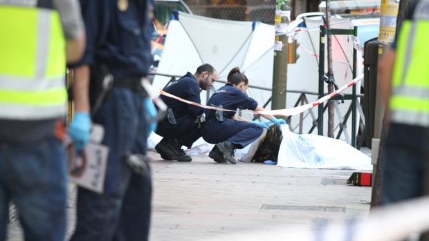 Hasta el lugar acudieron el Samur-Protección Civil y varias dotaciones de Bomberos del Ayuntamiento, indicaron fuentes de Emergencias Madrid. En la habitación más grande, la que sería el salón, hallaron el cuerpo de un hombre, de 42 años y de nacionalidad ecuatoriana. Le habían clavado un hacha en la cabeza. Era el cliente, que había aparcado un rato antes su Skoda blanco casi en la puerta del despacho. Dejó incluso puestas las luces de emergencia pensando que su gestión le llevaría poco tiempo.