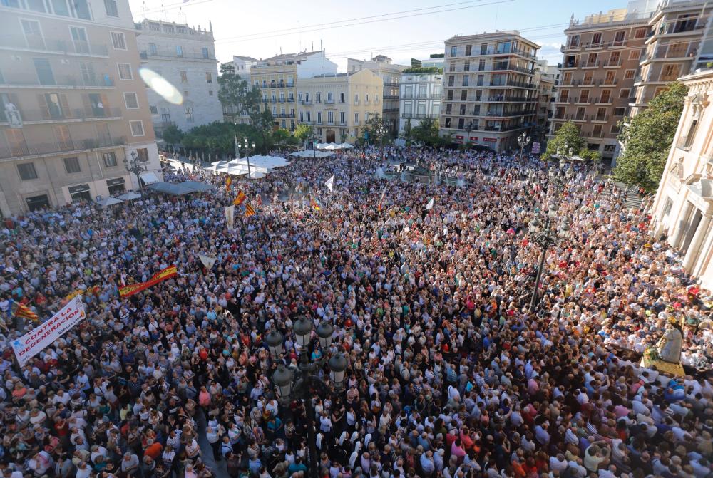 Miles de valencianos se concentran en la plaza de la Virgen contra los ataques a los católicos de la izquierda radical.