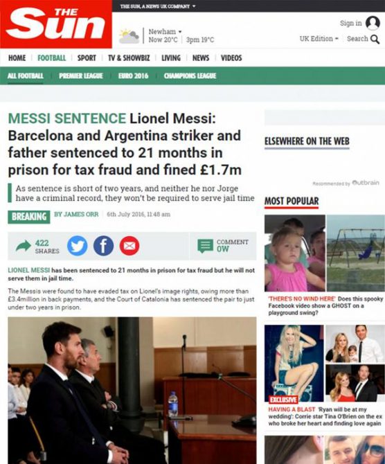 La prensa de todo el mundo habla sobre la condena a Lionel Messi: 21 meses de cárcel – Alerta Digital
