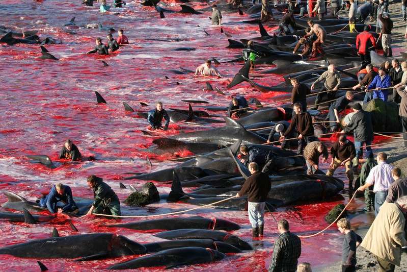 Los antitaurinos no dicen ni mu: Los habitantes de islas Feroe acaban con la vida de decenas de ballenas con machetes y lanzas