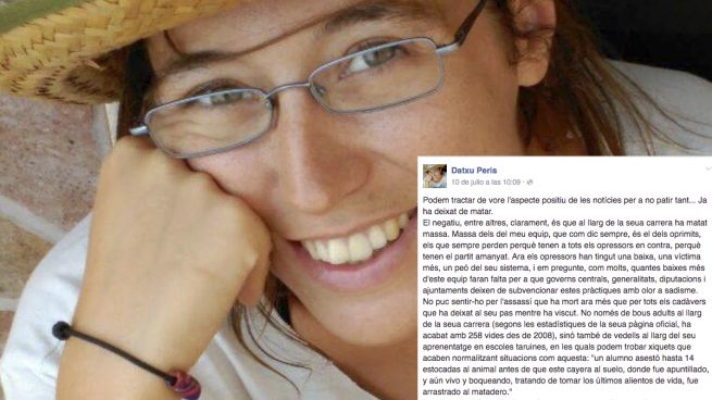 En su perfil en la red social Facebook, la concejal escribió el pasado domingo que no puede sentirlo por “el asesino que ha muerto ahora más que por todos los cadáveres que ha dejado a su paso mientras ha vivido”, que según la estadística de su página oficial han sido “258 vidas desde 2008”, más los novillos durante su aprendizaje.