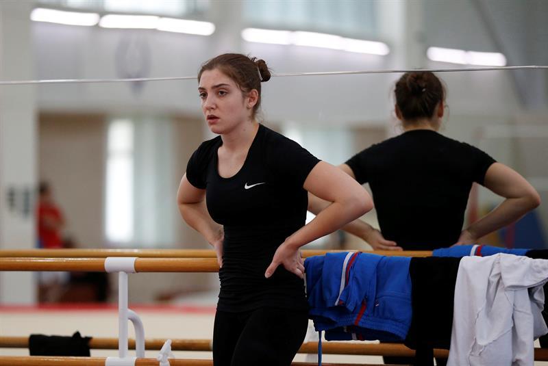 La gimnasta rusa Aliya Mustafina participa ayer en un entrenamiento del equipo olímpico ruso de gimnasia artística