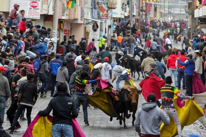 La “Pamplonada” hace correr por las calles a cuarenta toros bravos para cerrar las fiestas de Píllaro, una pequeña y laboriosa ciudad de los Andes de Ecuador, donde también habitan los diablos, que en enero salen a bailar por el año nuevo.