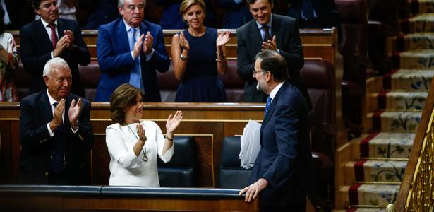 El candidato ha puesto una fecha económica clave sobre la tribuna del Congreso: el próximo 15 de octubre, el día en el que, como máximo, el Ejecutivo debe presentar su plan de estabilidad presupuestaria a la Unión Europea. Rajoy ha recordado que España ha conseguido “un importante grado de flexibilidad” presupuestaria, al conseguir retrasar hasta 2018 el cumplimiento del objetivo del déficit por debajo del 3%. Por ello, ha instado que “es inaplazable e imprescindible adoptar las medidas necesarias” para cumplirlo. Si no se hace, el presidente en funciones ha reiterado la amenaza que supone para el país: sanciones, pérdida de fuentes de financiación comunitaria y “menoscabo de la credibilidad ganada durante mucho tiempo”.