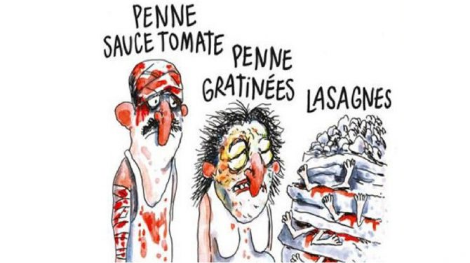 A charlie hebdo habría que pagarle igual, no estaría nada mal unos dibujitos satíricos de sus muertos, no tienen ni pizca de vergüenza, la libertad de expresión tiene un limite y estos lo pasan una y otra vez, mira como ya no tienen pataclines de hacer mas viñetas sobre el que todos sabemos.